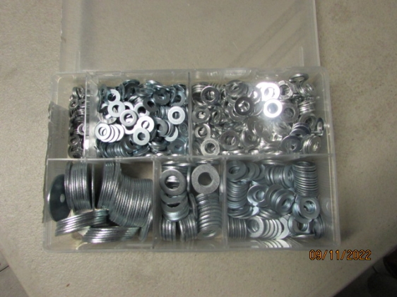 These Heavy Gauge Imperial Flat Washers are zinc-plated and come in a plastic box with compartments containing 800 washers.