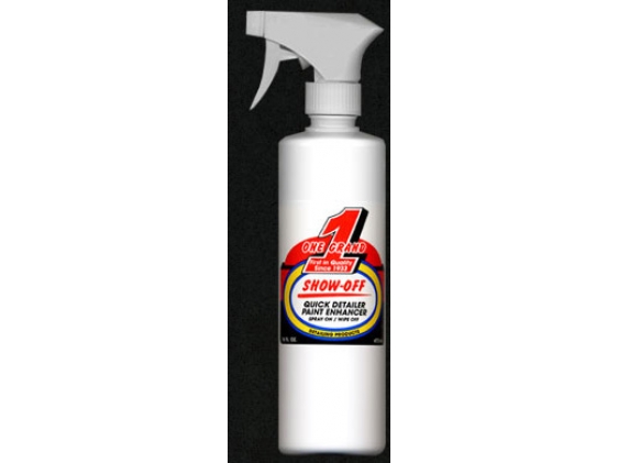 The Ultra Convenient Spray Detailer that truly gives you a just waxed appearance. We formulated "Show Off" to be used specifically over "Blitz Wax " or " Factory Finish Cream Wax" to maintain that detailed, "Just Blitz Waxed" look. "Show Off" is a great compliment to our (Brand New) "BLUE 33" (wash soap), creating the "Perfect Maintenance Program" between applications of either "Blitz Wax" or "FFCW". You simply wash with "BLUE 33", rinse, spray "Show Off" on all wet surfaces, then dry with a ONE GRAND "Water Sprite" and a soft cloth creating a Brilliant, Protected Finish!