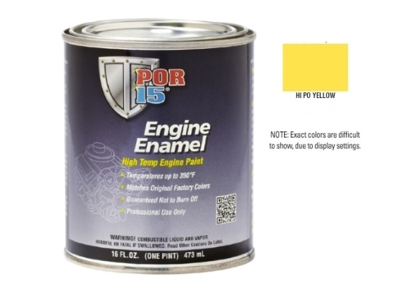 POR15 Engine Enamel is better than any other paint! Why? Because it contains 80% solid pigment, and therefore less solvent to evaporate into thin air, so providing a deeper, richer colour. Easily applied without leaving streaky brush marks.