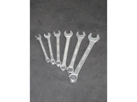 This Set Contains 6 Metric Spanners One End Open And Set At 15 Degrees, The Other Ringed, Sizes are 3/8, 7/16, 1/2, 9/16, 5/8 and 3/4" AF. Ideal sizes for most maintenance jobs. Spanner Lengths Range From 130mm to 190mm. Forged from chrome vanadium steel hardened, tempered and chrome plated.