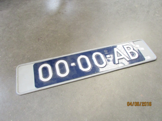 Stalen nummerplaathouders gemaakt in de maat t.b.v. de Nederlandse Oud blauwe plaat. Links en rechts is 5 cm. extra ruimte gehouden voor montage van kentekenplaat-verlichting