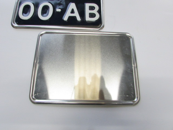 Aluminium nummerplaathouders gemaakt in de maat t.b.v. de Nederlandse Oud blauwe plaat.