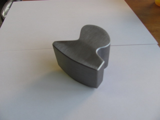 Uitdeuktas met egaal ronde vlakken met opzij een haakse hoek en aan de andere zijde een kleine radius.