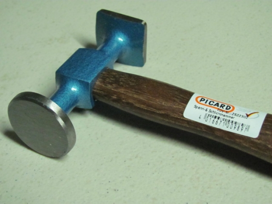 Uitdeukhamer met 32 mm bijna vlakke ronde kop en 25 mm bijna vlakke vierkante kop.