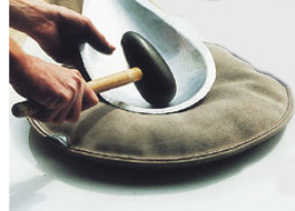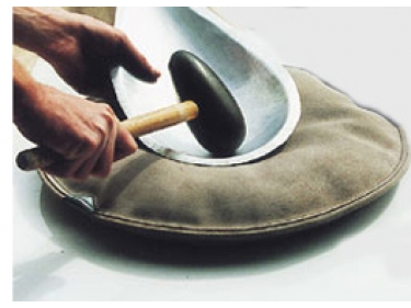 Using a Bossing Mallet on a Sandbag is the ideal way to Beat and Shape Metal Panels before starting the Wheeling process.