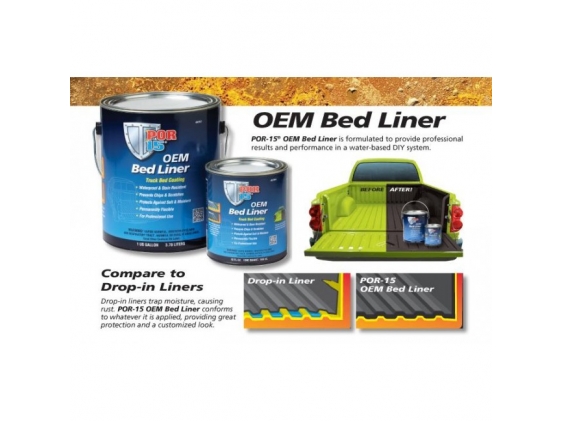 Formulated with POR15 rust preventive technologies POR15 OEM Bed Liner offers superior adhesion, impact resistance, and flexibility, as well as an attractive, textured semi-gloss black finish that provides the ultimate in truck bed protection.