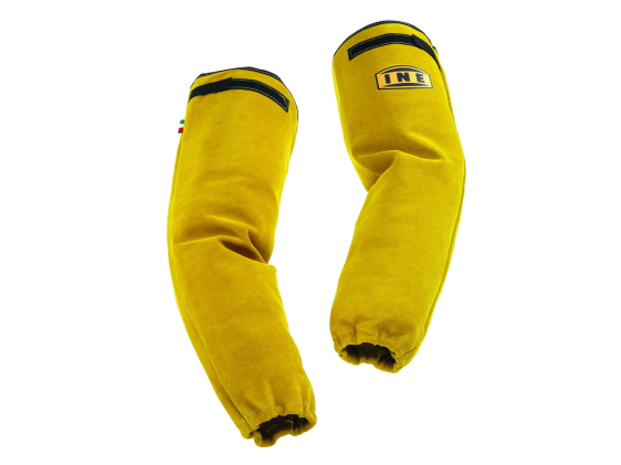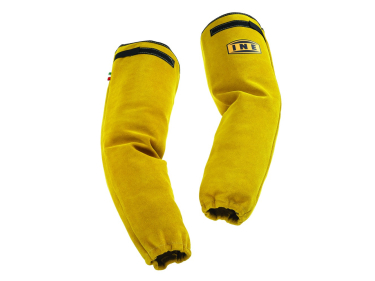 Leather sleeve for protection of the forearm during welding. Comfortable fit thanks to the elastic in the cuff and top.